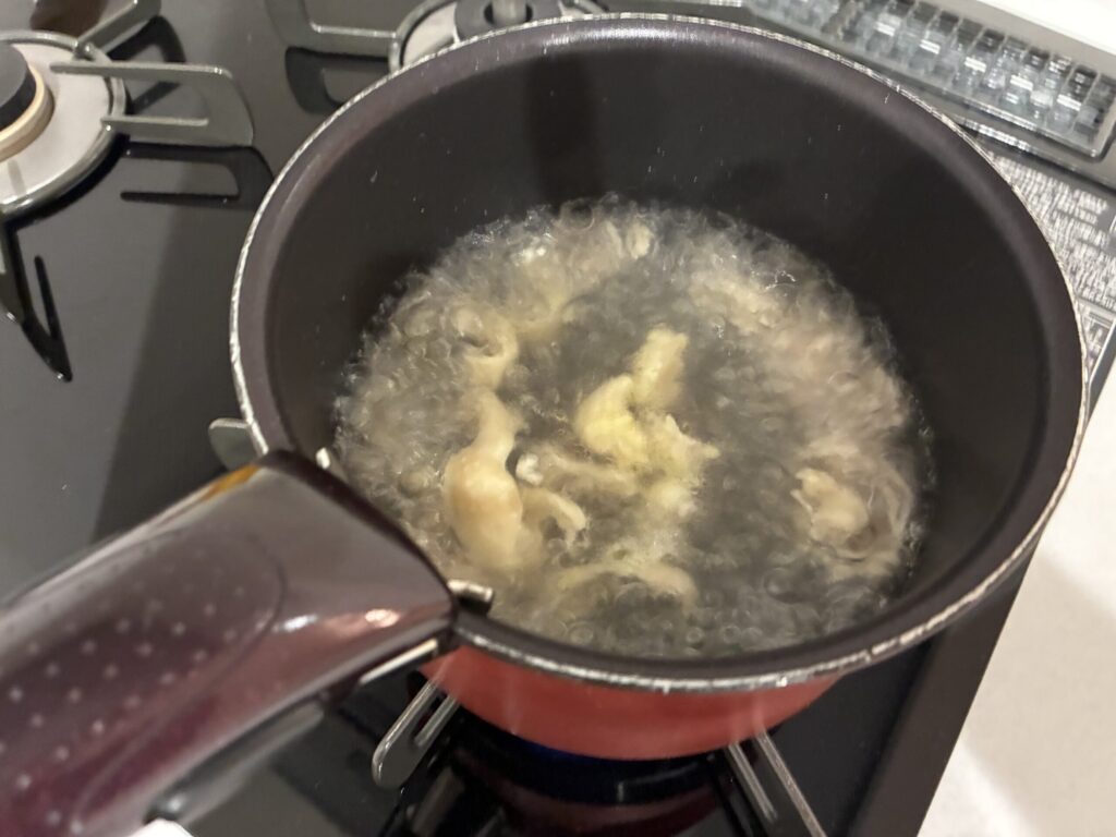 このタイミングで鶏むね肉が浸かるくらいの水を鍋に入れ火にかけておきましょう!しっかり沸騰させてください。
