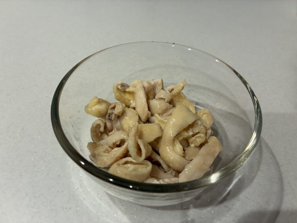 こちらははいで余った皮を調理していきます!短時間で簡単にできるので超オススメです!