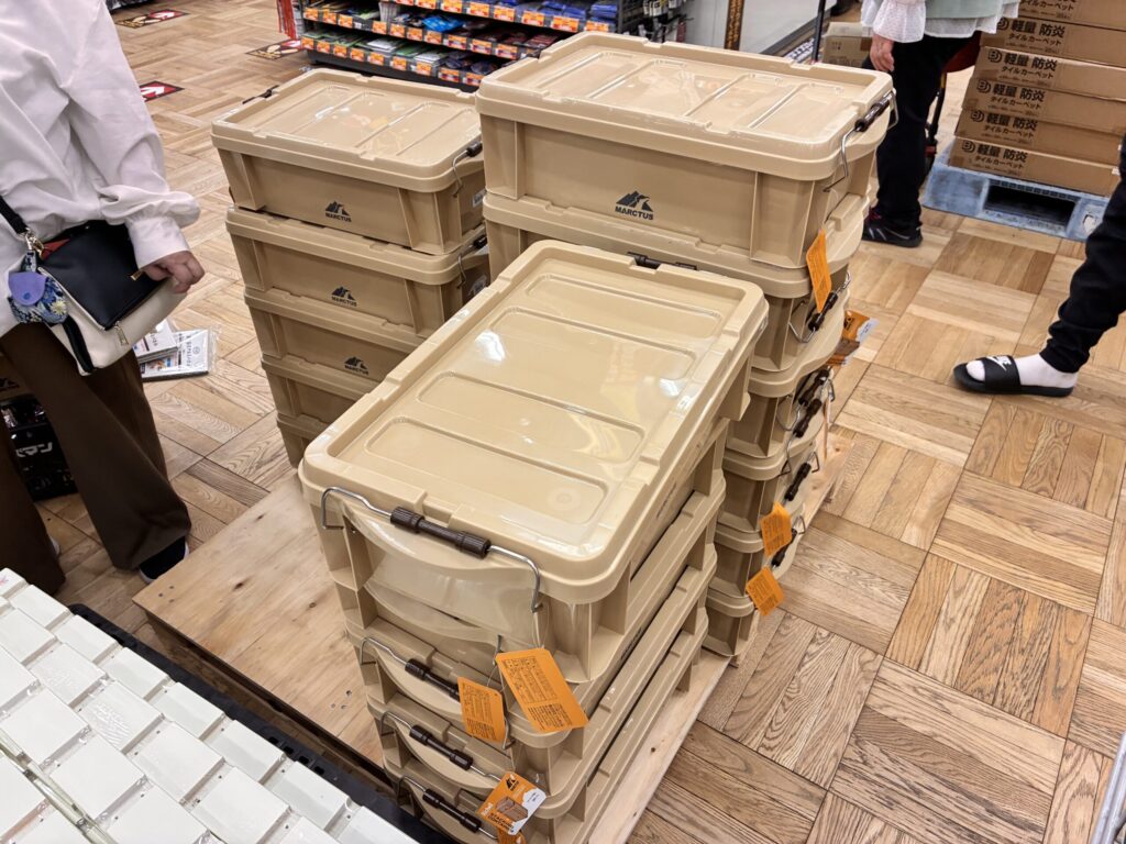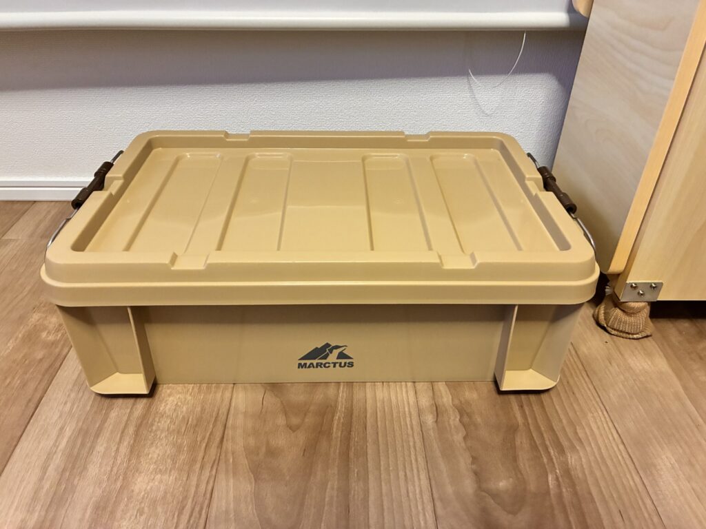 キャンプ小物や工具の収納に使えるスタッキングコンテナです。