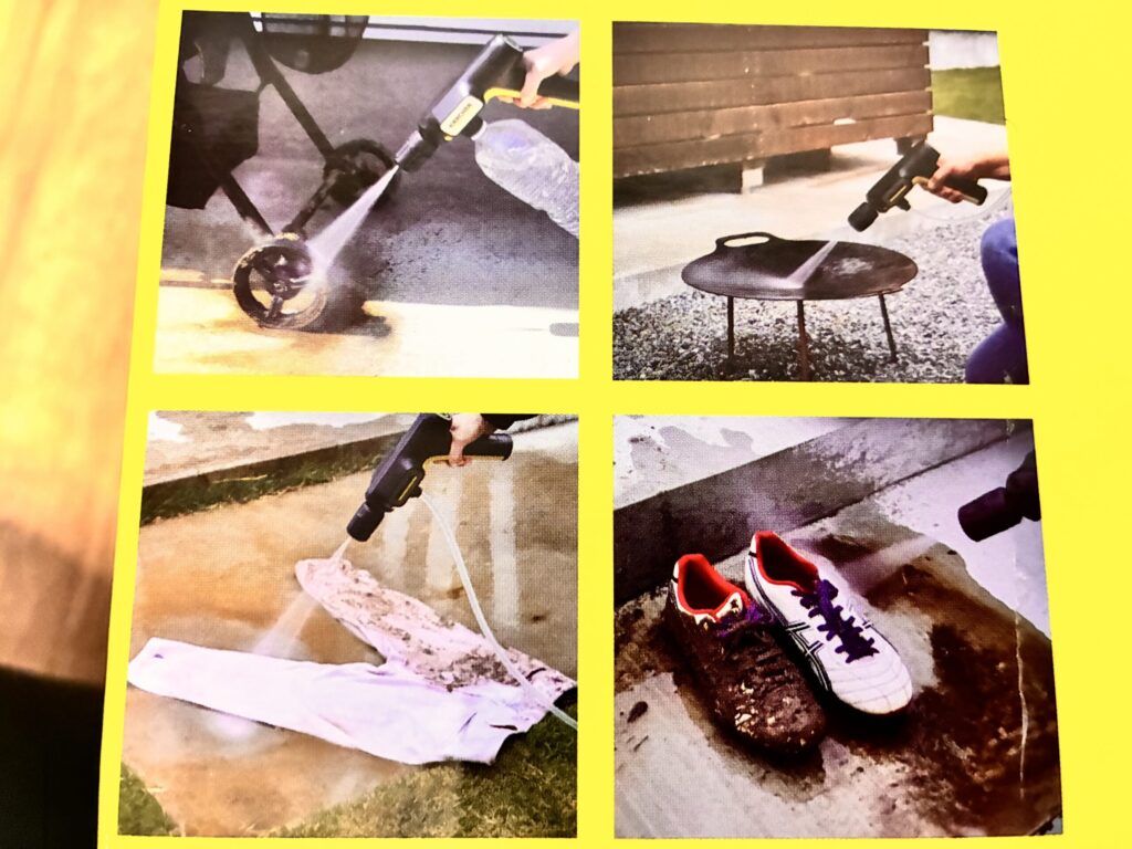 キャンプ後の泥だらけのギアをサクッと洗浄できたり、「車の砂汚れが目立つなあ」とふと思った時に手軽に使えるのがこの商品の魅力ですよね!
