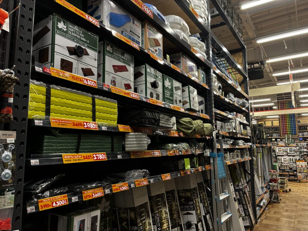 ちなみにハンズマンにはキャンプコーナーが充実していてテント、クーラーボックス、焚火台など豊富な品揃えでした。