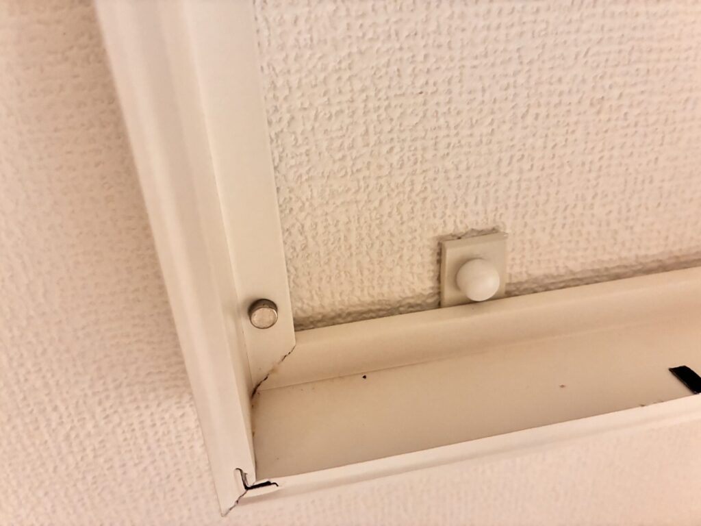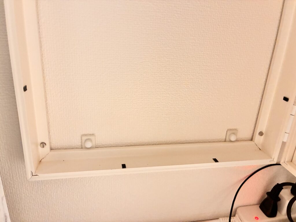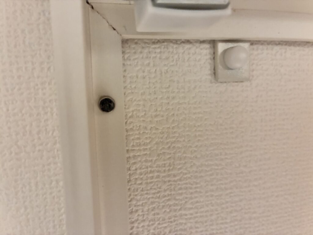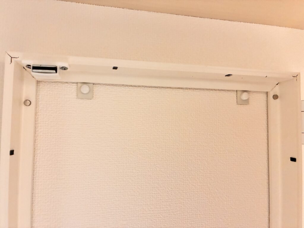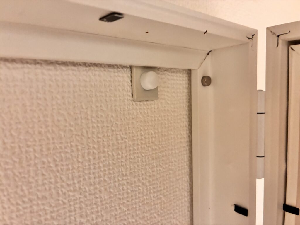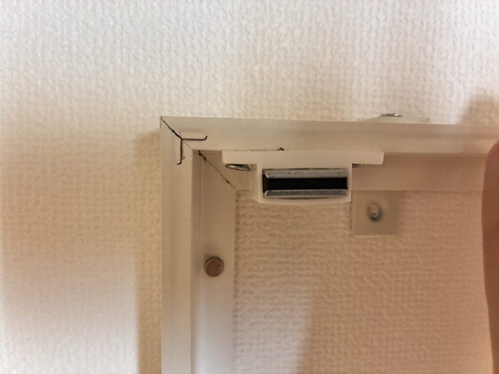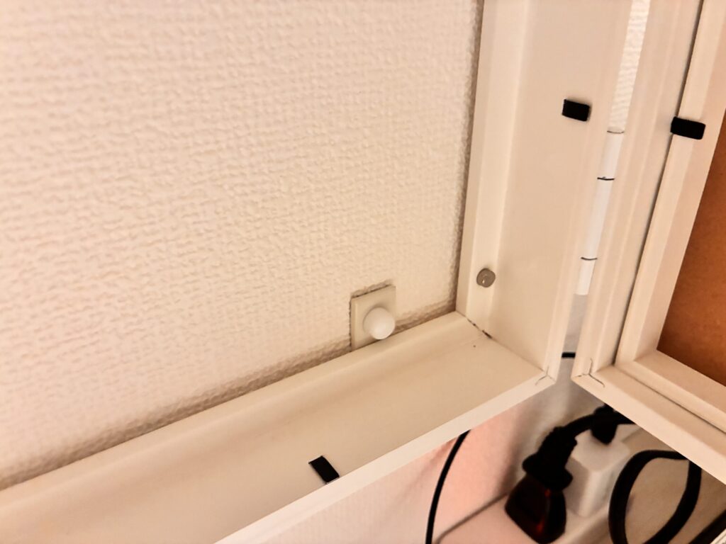 扉を閉めたときにパチッと固定されるよう磁石を取り付けます。位置がずれると閉まりが甘くなるので微調整が必要です。