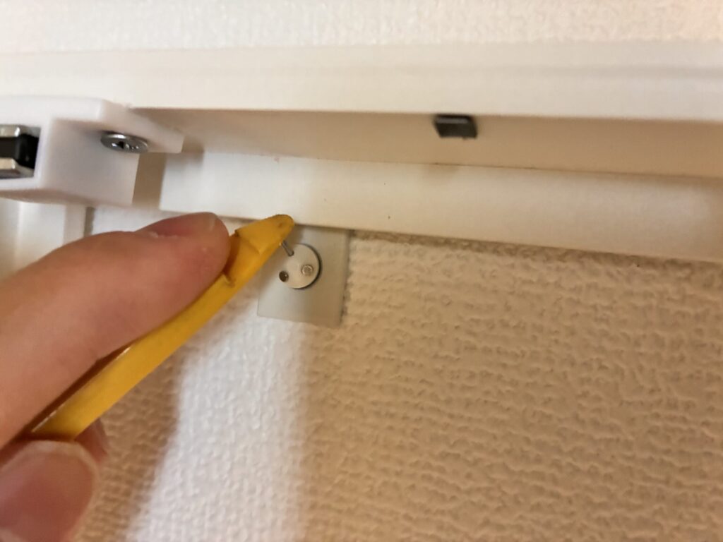ここが一番の難関!L字ステーを取り付けるにはネジ穴を開けてドライバーでねじ込む必要があります。電動ドライバーがあると作業がかなり楽になるのでおすすめです。 手動でも不可能ではないですが、力が必要なので覚悟を(笑)。